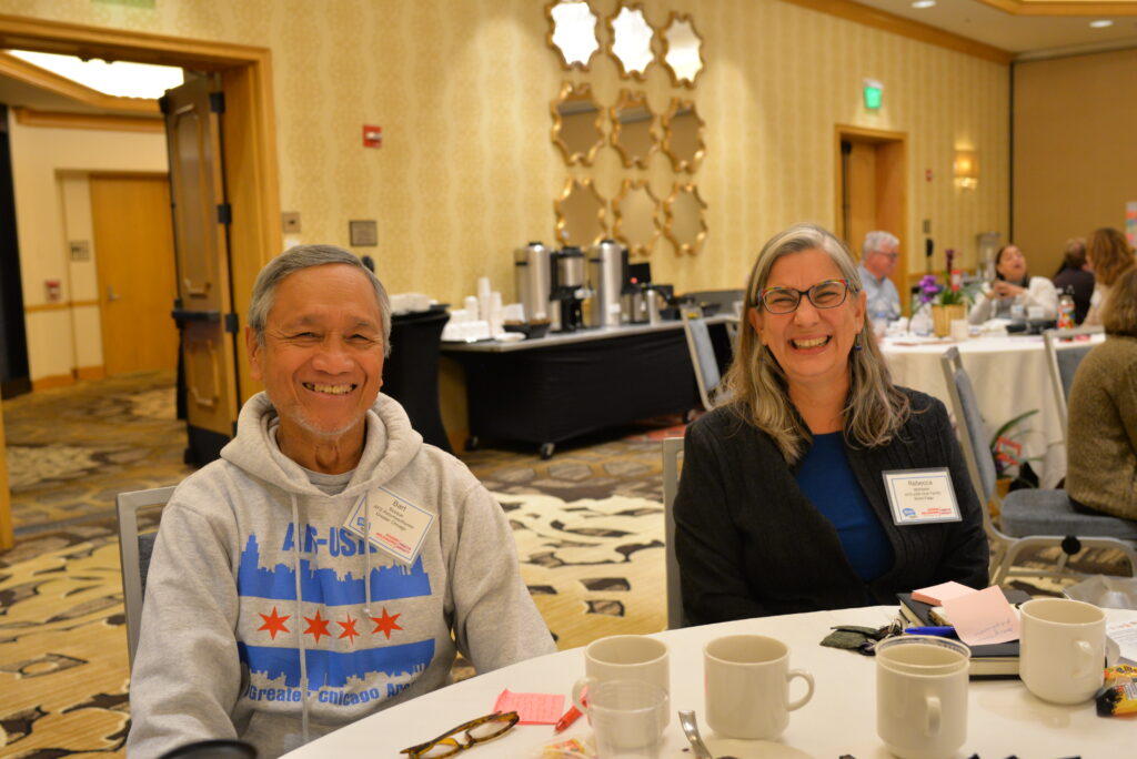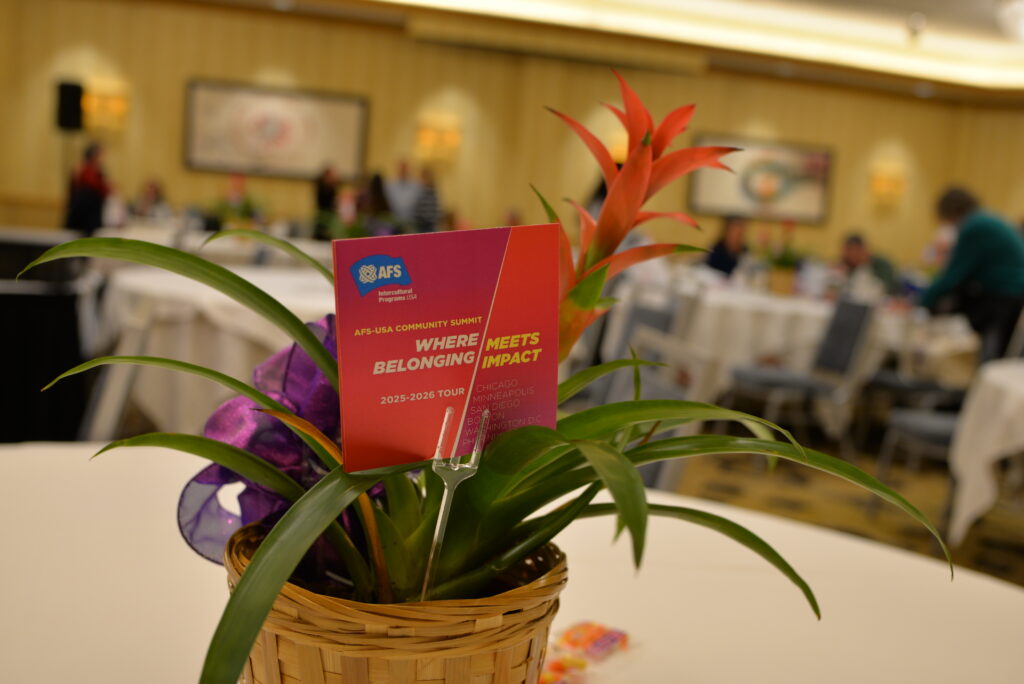The Greater Chicago area team was happy to put our best foot forward as the “host community,” spotlighting our beautiful city. The team organized full-to-the-brim goody bags stuffed with info about Chicago, and Chicago swag and sweets. The Chicago team also brought in lovely table centerpieces and a Chicago backdrop for photo ops! Additionally, each of the sessions on day one of the summit was co-presented by one of four Chicago volunteer leaders along with AFS-USA staff.