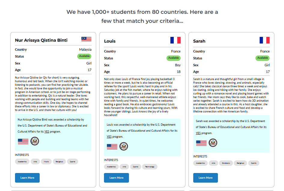 AFS-USA will be making updates to the Meet the Students search tool on afsusa.org/host to improve its look, feel, and overall usability on both desktop and mobile devices. Originally designed to engage potential host families in a fun and compelling way, the tool is being refined to better serve our users.